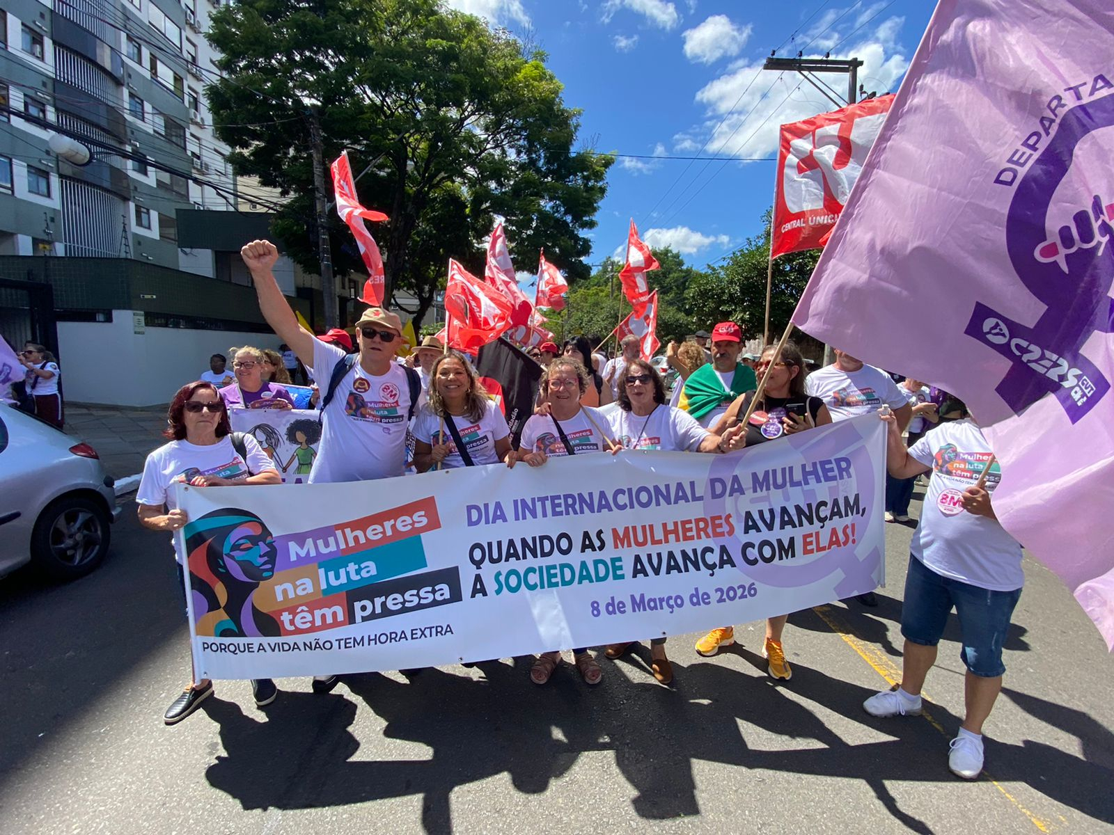 Milhares de mulheres ocuparam as ruas de Porto Alegre no último domingo (8) para marcar o Dia Internacional da Mulher, em uma das maiores mobilizações dos últimos anos na capital gaúcha. O ato reuniu trabalhadoras, estudantes, movimentos feministas, sindicatos e organizações sociais em defesa da vida das mulheres e contra a violência de gênero.